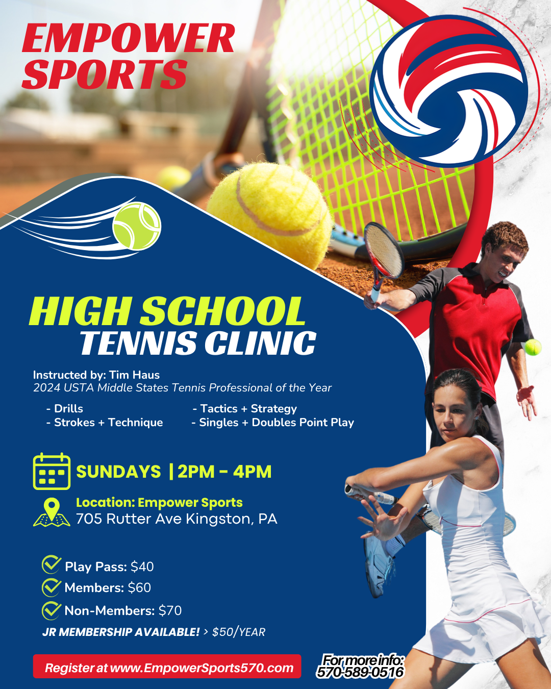 Tim Haus, the 2024 USTA Middle States Tennis Professional Of The Year, is now available for lessons and clinics at Empower Sports!